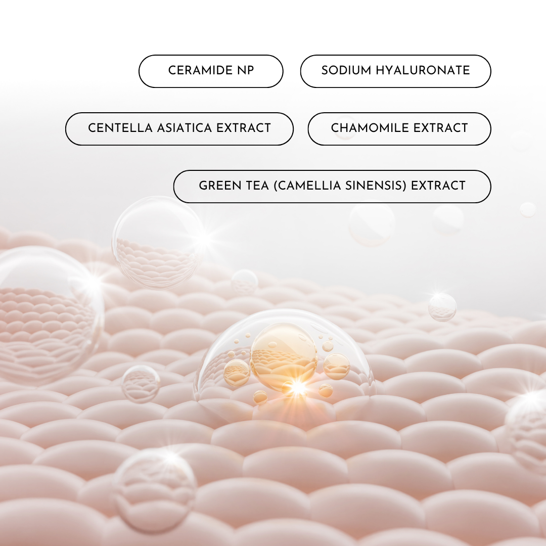 The mist features Ceramide NP, which strengthens the skin barrier and locks in moisture, and Centella Asiatica extract, renowned for its healing and soothing properties. Sodium Hyaluronate replenishes hydration and plumps the skin, while Hibiscus and Chamomile extracts provide antioxidant and calming effects. Together with Rosemary and Green Tea extracts, the formula helps protect against free radicals and improves overall skin resilience.