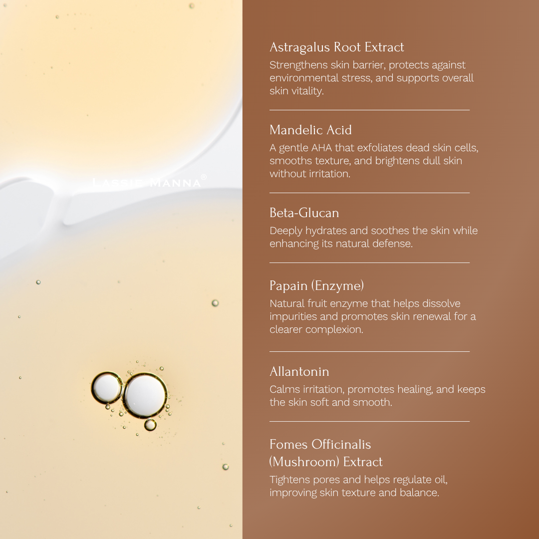 LASSIE MANNA Crystal Refining Enzyme Essence is a lightweight, refreshing treatment designed to purify, smooth, and revitalize your skin. Infused with natural plant extracts, hydrating agents, and skin-refining acids, this essence gently exfoliates accumulated dead skin cells, preventing clogged pores, blackheads, and enlarged pores, leaving your complexion looking brighter, softer, and more refined.