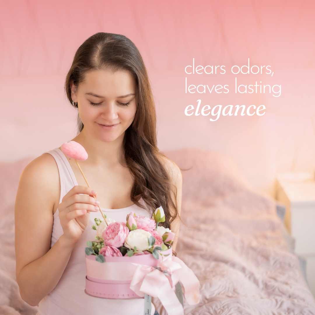Formulated with Soyethyl Morpholinium Ethosulfate and Quaternary Ammonium Compounds, this spray works to neutralize and break down odor-causing molecules, ensuring long-lasting freshness. Benzalkonium Chloride adds antimicrobial protection to reduce bacterial buildup on fabrics and surfaces. Gentle surfactants like Cocamidopropyl Betaine and C12-13 Pareth-9 aid in even distribution of fragrance while preventing residue, and the added Parfum delivers a refreshing rose serenity scent that uplifts the atmosphere.