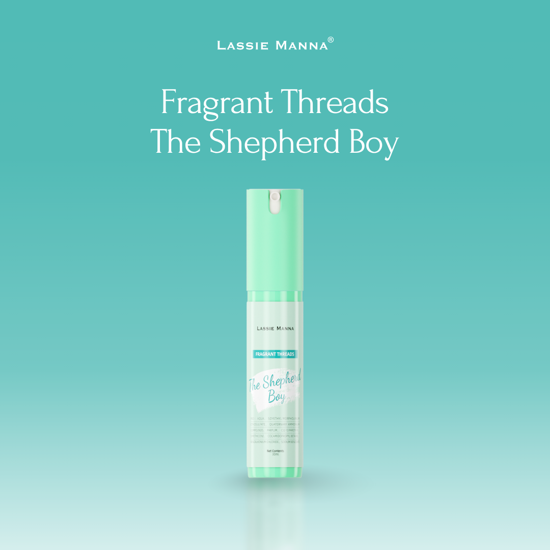 Lassie Manna Fragrant Threads –The Shepherd Boy is a versatile fragrance, deodorizing, wrinkle-removing, no-iron, no-wash fabric spray; spray designed for clothing, mattresses, fabric sofas, hard surfaces, cabinets, and indoor spaces. Infused with a woody scent, it effectively breaks down and eliminates unwanted odors such as sweat, smoke, mustiness, and cooking fumes. It also helps remove wrinkles formed on clothing. The result is a clean, fresh, and pleasantly fragrant environment that enhances your comfort and daily living experience.