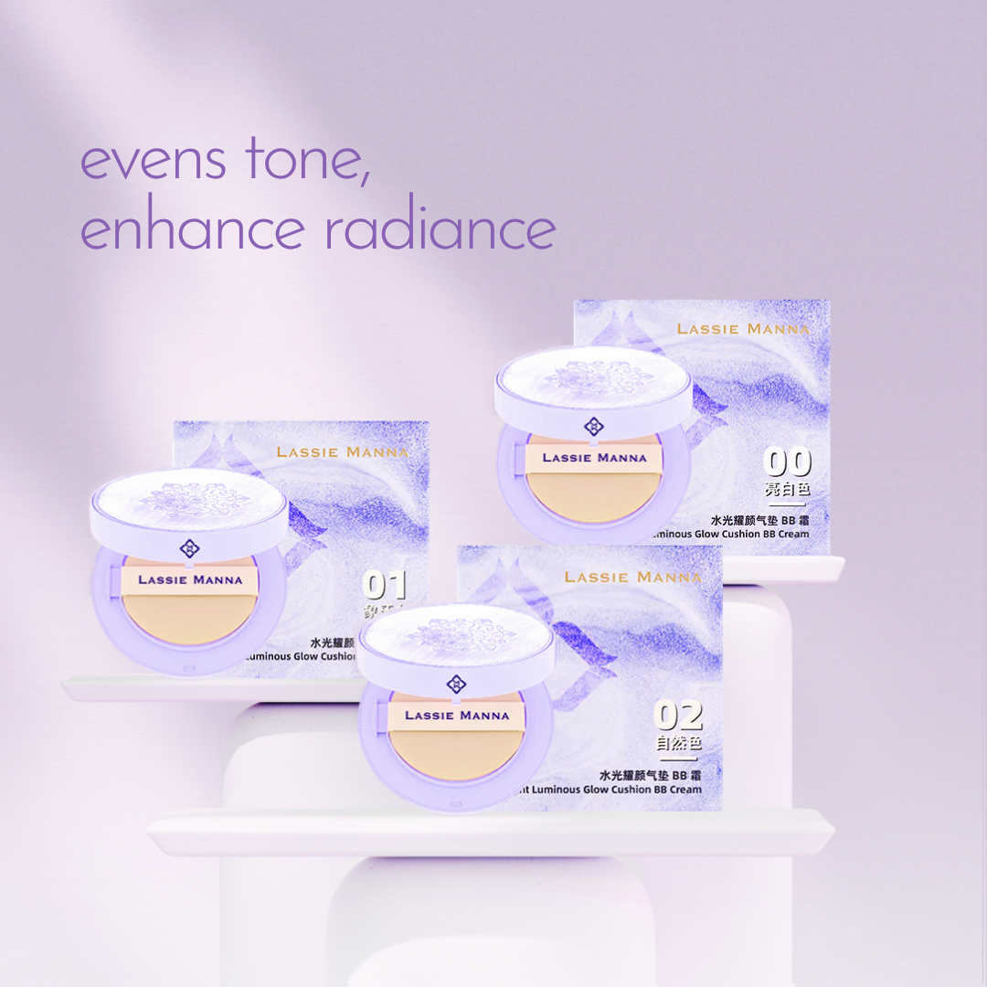 Lassie Manna Radiant Luminous Glow Cushion BB Cream in Shade 00 Bright is designed to deliver a luminous, radiant finish while providing lightweight coverage. Enriched with probiotics, vitamins, and botanical extracts, it hydrates, brightens, and evens skin tone while protecting the skin with nourishing ingredients. Perfect for fair complexions seeking a bright, flawless base.
